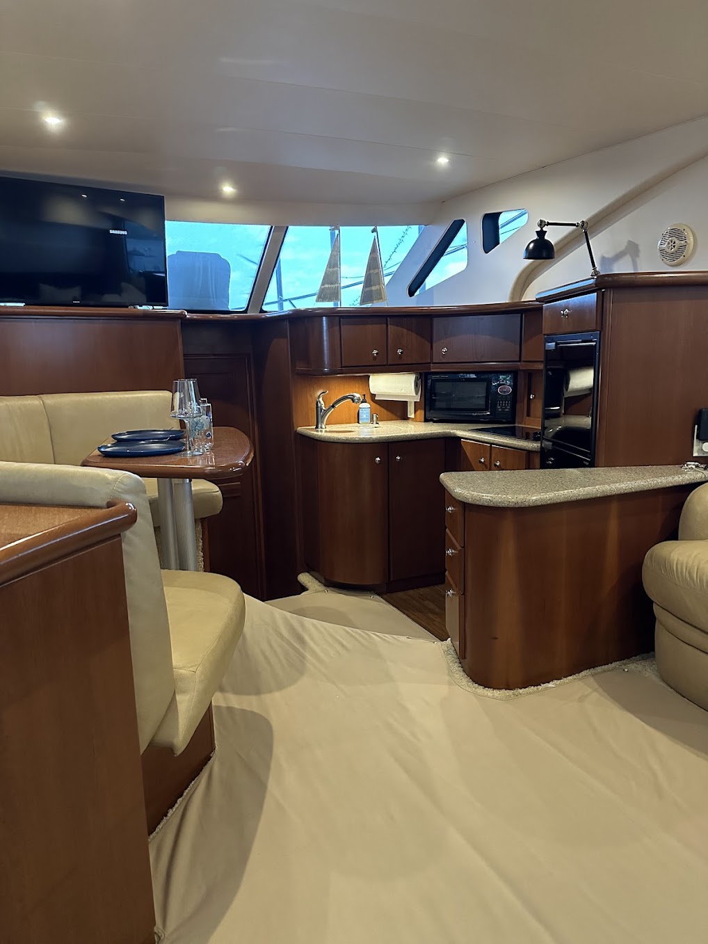 Aft ceiling mounted courtesy/parking lights, great for grilling at night on the hook.